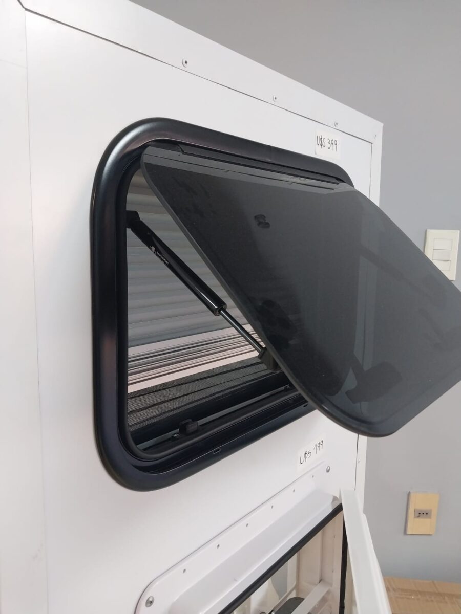Alta calidad, con doble acrílico, mosquitero, black out y amplia apertura regulable con tensores. Permite mantenerla abierta cuando está en movimiento.