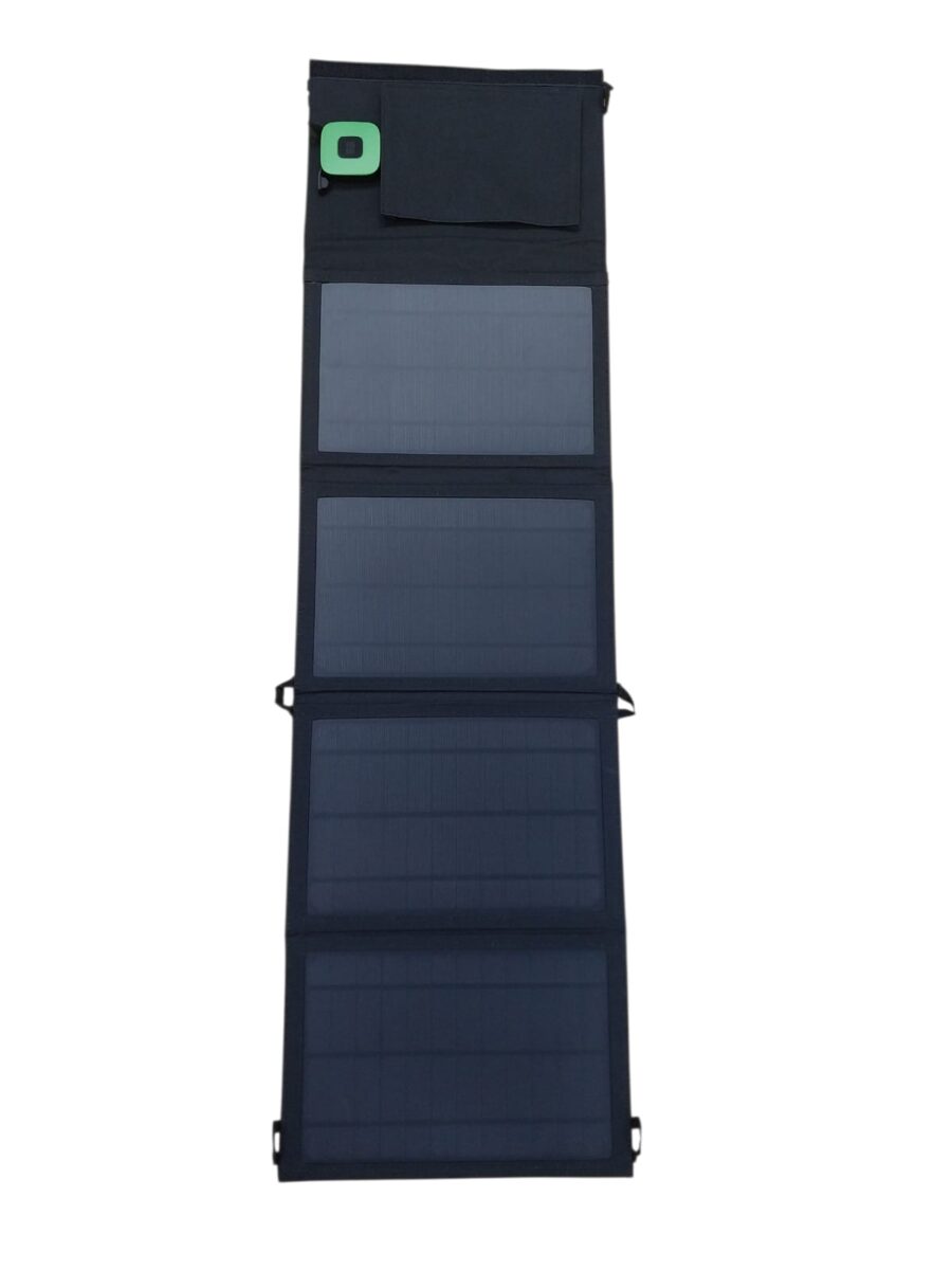 Panel solar flexible de 24 Watts. Incluye dos entradas USB y forro, ideal para quienes acampan o para la vida al aire libre. Muy compactol y ligero, lo que lo hace fácil de transportar.